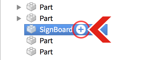 1. In the Explorer window, hover over the SignBoard object and click the circle ⊕ button.