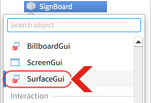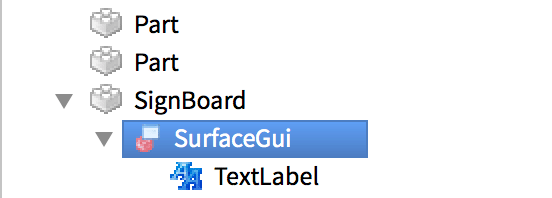 Now let’s create a surface GUI as a direct child of the signboard part.