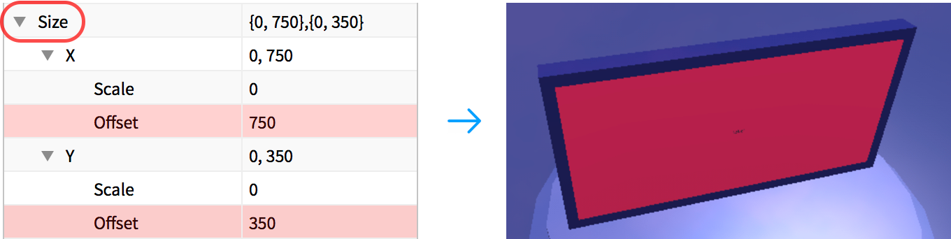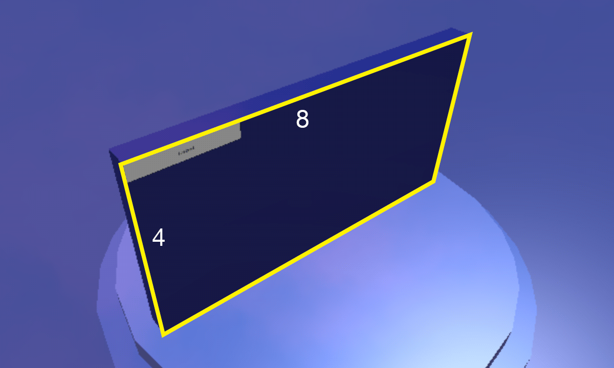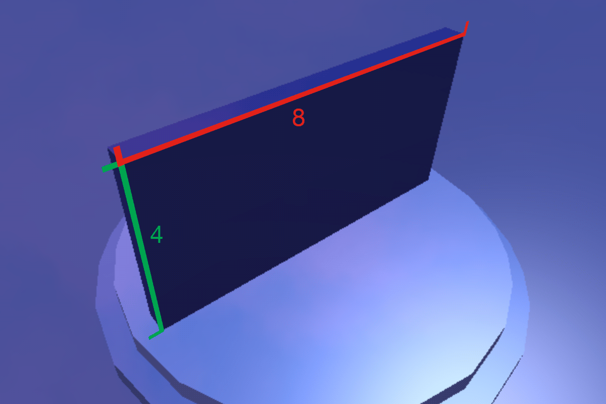 Depending on which surface of the part the GUI is placed on, it’s smart to set the canvas size to the same proportions. Since the part is 8 studs across and 4 studs high, the front surface (outlined in yellow) is also 8 studs across and 4 studs high.