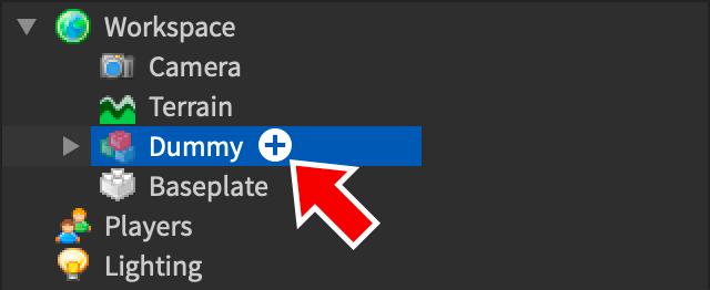 - In the Explorer window, hover over the Dummy object, click the