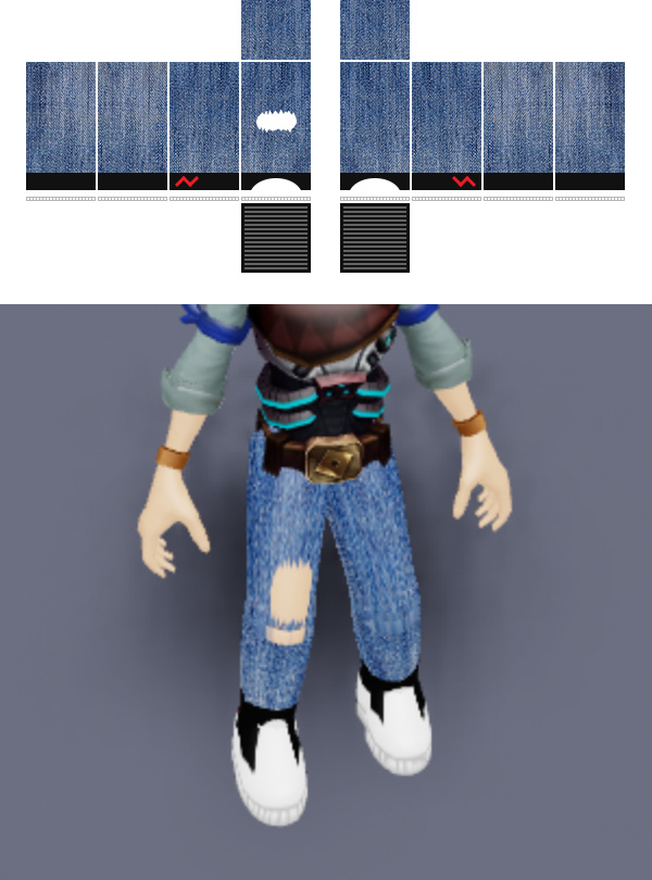 Unlike t-shirts, shirts and pants wrap all the way around an avatar’s body, giving you more design control. To get started, download the following clothing templates and draw your own art on top.