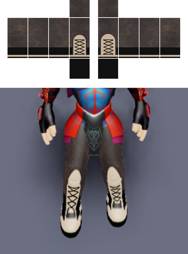 | Tall rectangle | 64 × 128 pixels | Sides of torso (R, L) Sides of arms/legs (L, B, R, F) |