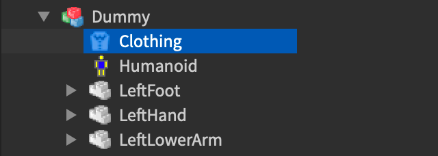 button, and insert either a ShirtGraphic (T-Shirt), Shirt, or Pants object according to your clothing type.