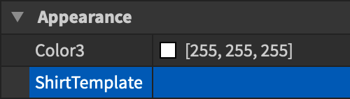 - Click inside the property’s row and select the image you uploaded to Roblox. This should apply the clothing to the dummy avatar so you can see how it looks.