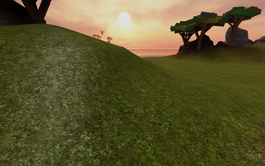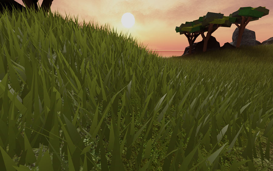 All terrain of the Grass material can be decorated with animated blades of grass by toggling on Decoration.