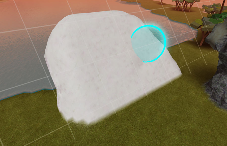 When using the Add or Subtract tool, you’ll see a grid appear at your mouse. All terrain is created on this grid. As you click and drag your mouse to edit terrain, notice that the terrain is affected by the angle of the grid. Tilting and rotating the camera will change the grid angle.