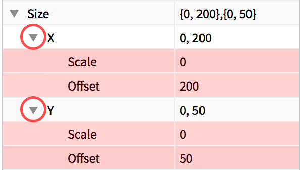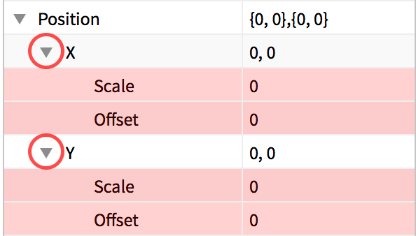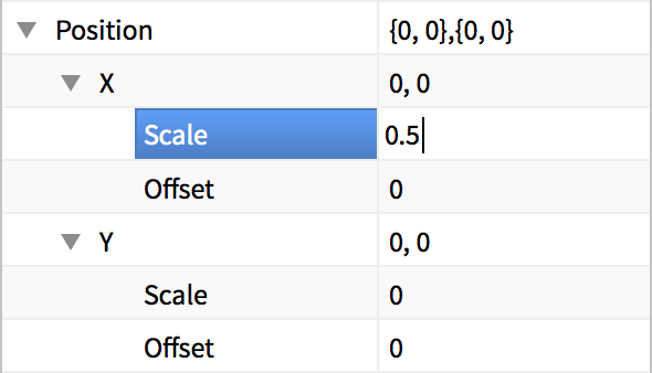 - Now expand the X and Y branches directly under it. Similar to Position, each has unique Scale and Offset properties.