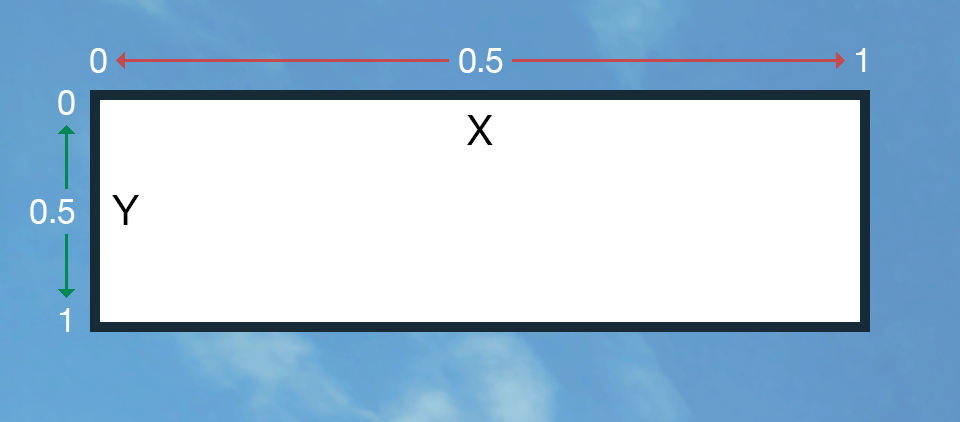 The anchor point is based on an X and Y value which is a percentage of the object’s size: 0 equals 0% and 1 equals 100%.