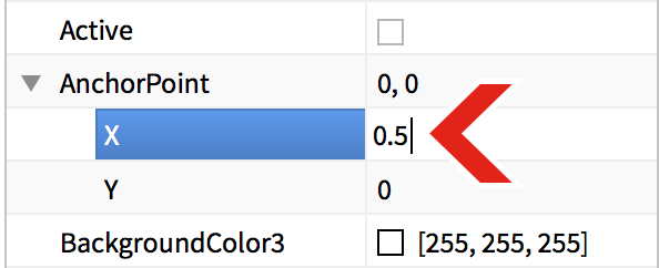 - Find the AnchorPoint property and click on the small arrow to expand it.