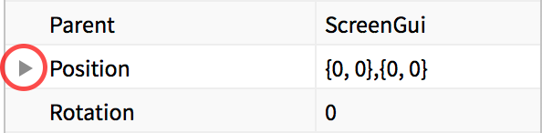 The Scale property represents a percentage of the parent object’s width or height. Remember that the screen GUI “canvas” spans the full width and height of the 3D game view — that means the Scale property can be used to position an object directly at the center of the view, against the left or right edge, or anywhere between based on a percentage of the screen’s full width or height.