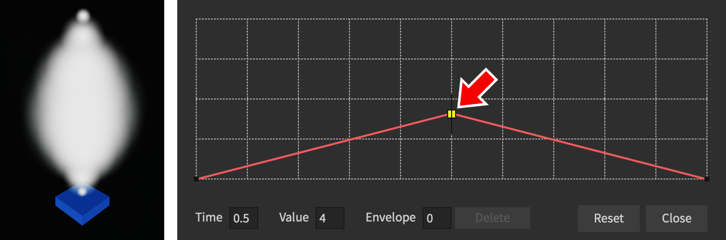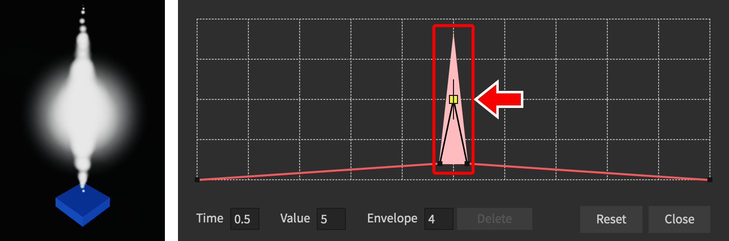- To add a random range for size, click on any marker and drag the envelope lines up or down. At that time, particles will be a random size between the red envelope.