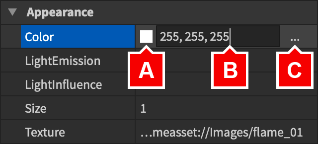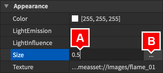 Once an emitter is added, you can modify the effect through its properties. Below are some common properties of particle emitters.