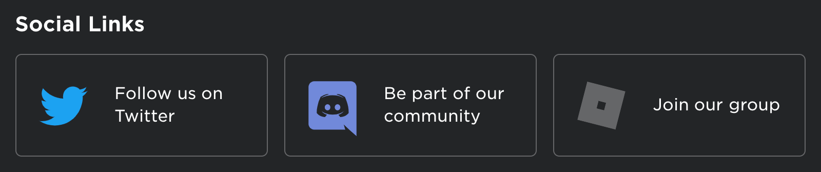 - Add up to three links to social media sites. Once set, players will see the links on the experience’s page.