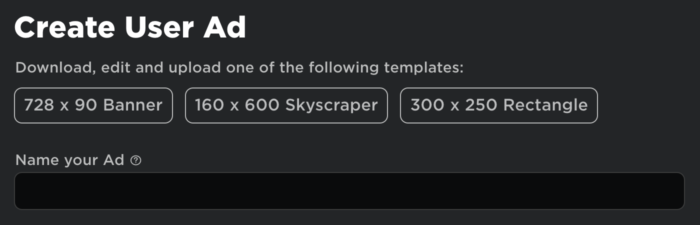 | Banner | 728×90 | On the top or bottom of the Roblox website. |