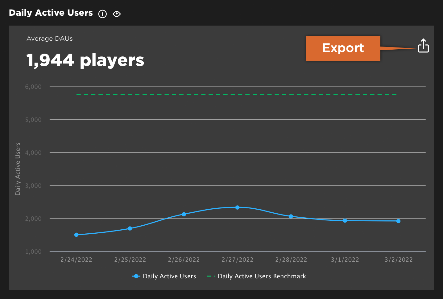 Below are some metrics related to acquiring new users and the number of active users you have for your experience. Information here can be filtered by date range. Individual chart filters are shown for each KPI chart. All metrics are updated on a 24 hour cadence.