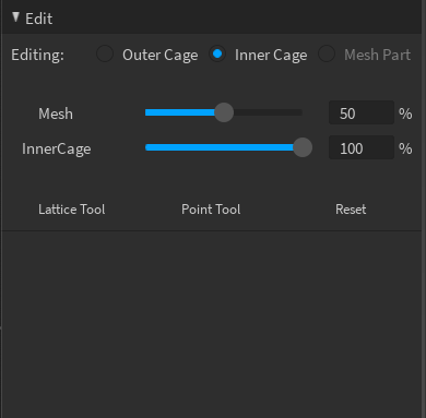| Outer Cage and Inner Cage Slider | Adjusts the opacity of the cage vertices to view the accessory mesh. |