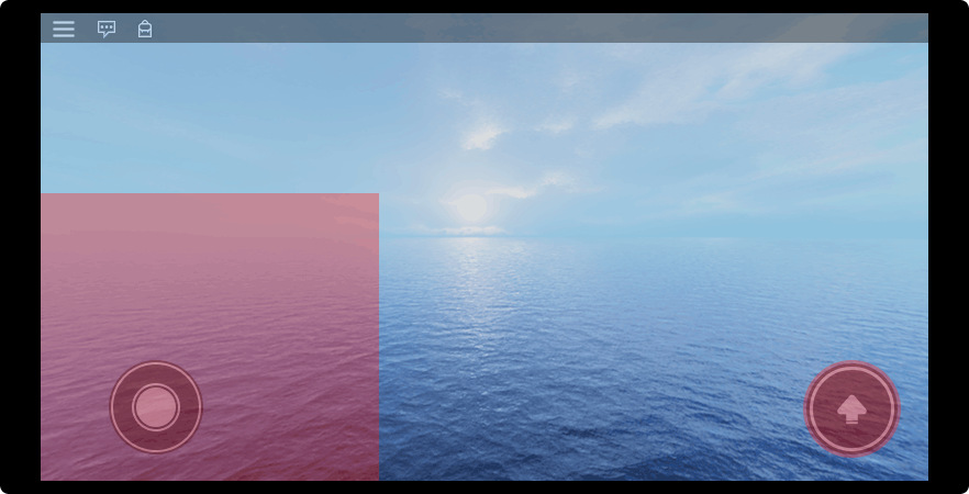 On mobile devices, the /articles/customizing game controls#mobile-controls|default controls occupy a portion of the bottom-left and/or bottom-right corners of the screen. When you design the game UI, avoid placing important info or virtual buttons in these regions.