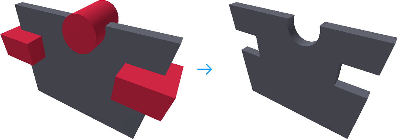 BasePart/SubtractAsync|SubtractAsync()is called on the window, using the smaller block as the part to subtract.