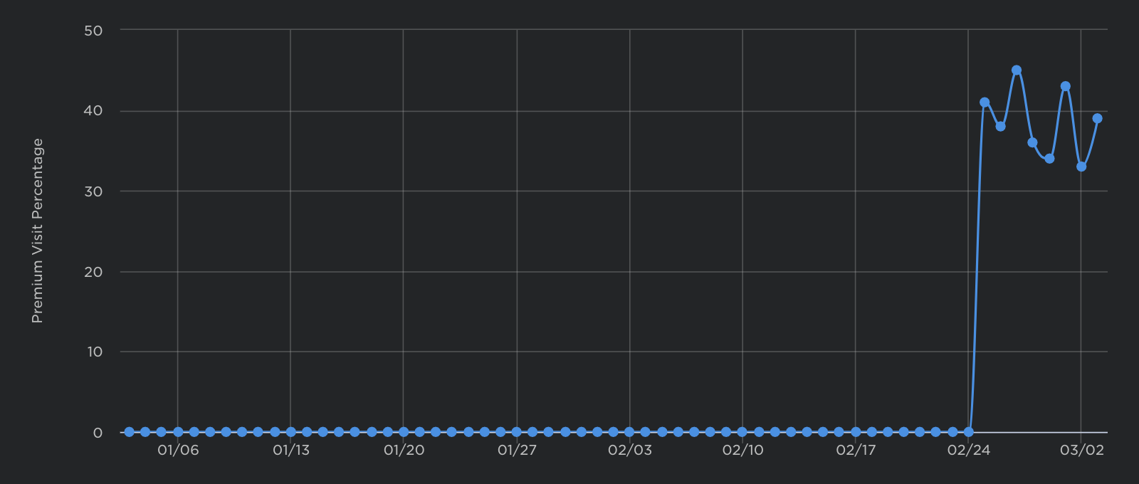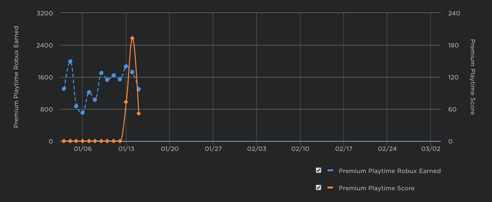 This chart shows how many game visits are from Premium subscribers. It displays Premium Visit Percentage, Premium Visits, and Total Visits.