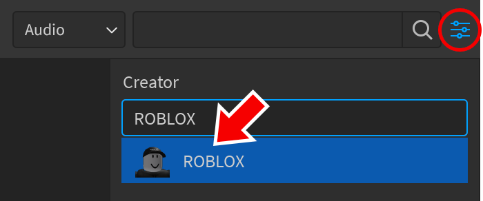 1. Click the button and then, in the Creator field, type ROBLOX. Select the first option to sort results by legal, free-to-use audio published by Roblox