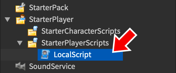 1. In the Explorer window, create a new LocalScript inside StarterPlayerStarterPlayerScripts.