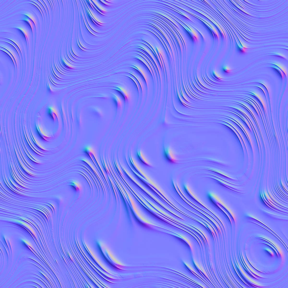 A SurfaceAppearance/NormalMap|NormalMap modifies the lighting of the surface by adding bumps, dents, cracks, and curves without adding more polygons. The R, G, and B channels of the image correspond respectively to the X, Y, and Z components of the local surface vector. A uniform image of color [127, 127, 255] translates to a completely flat normal map.