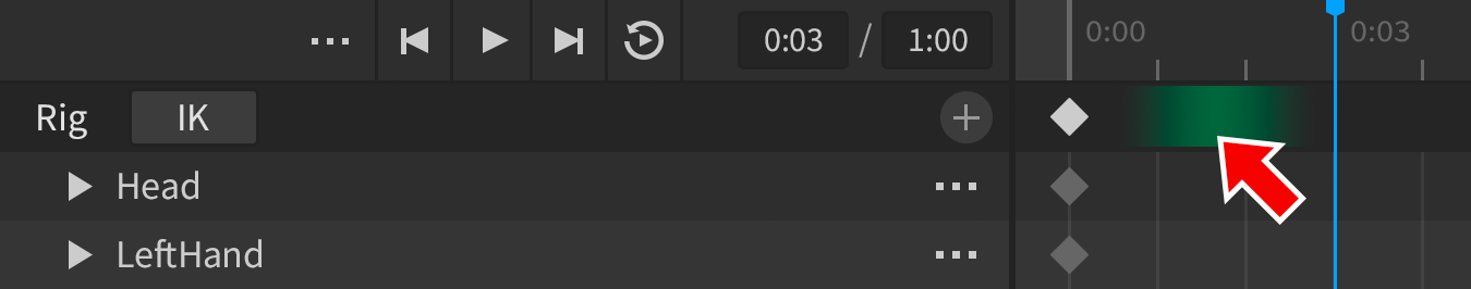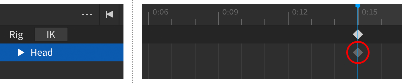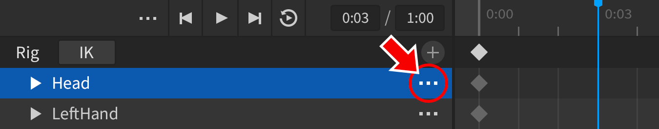 • For a single part of the rig, move the scrubber bar to a new position, click the button for a track, and select Add Keyframe.