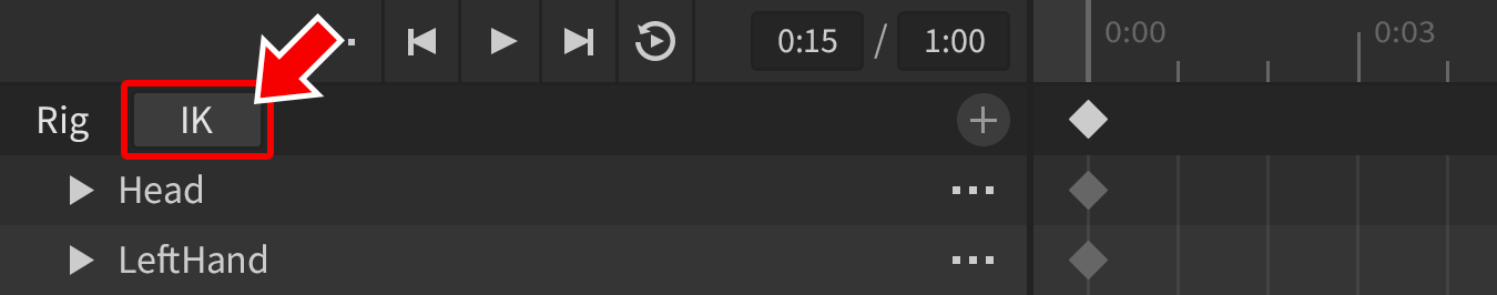 1. Click the IK button in the animation editor.