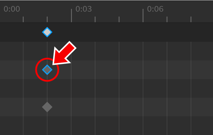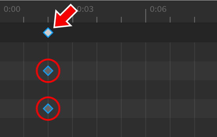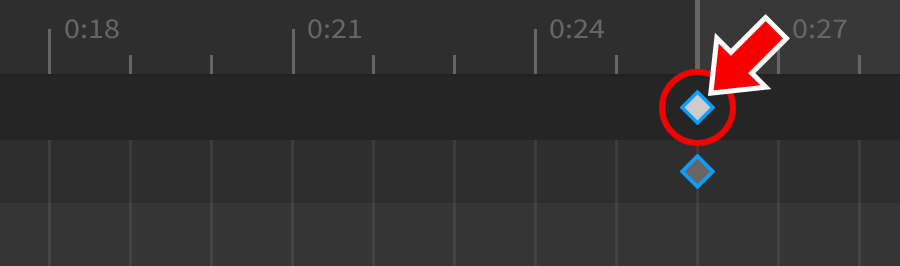 1. Click on any keyframe in the timeline. Alternatively, you can select all keyframes at a specific position by clicking the diamond symbol in the upper bar. Selected keyframes will be surrounded with a blue border.