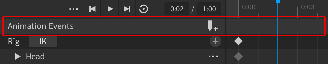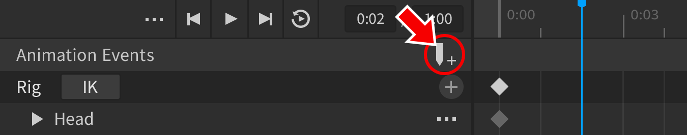 As you create events, they become available for usage throughout the animation, not only at the time position where you created them. For instance, you can create a “FootStep” event marker at the point where a character’s left foot touches down, then use the same event when the character’s right foot touches down.
