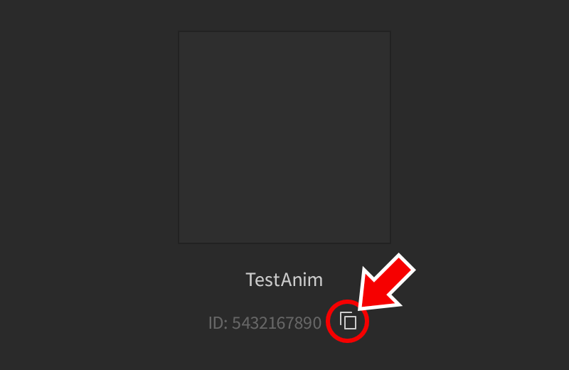 3. Once the upload is complete, you can copy the animation’s asset ID by clicking the “copy” button in the export window. This ID is required for scripting animations as outlined in /articles/using animations in games|Using Animations in Games.
