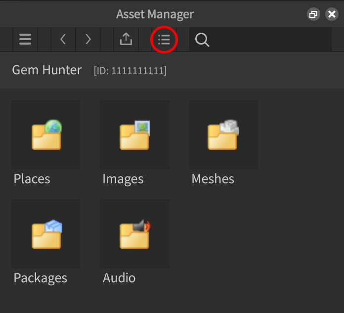 The Asset Manager window lets you manage images, articles/Mesh Parts|meshes, articles/roblox packages|packages, articles/sounds and music|audio, and articles/games and places|places in your game. It also provides a mechanism to bulk import multiple game assets.